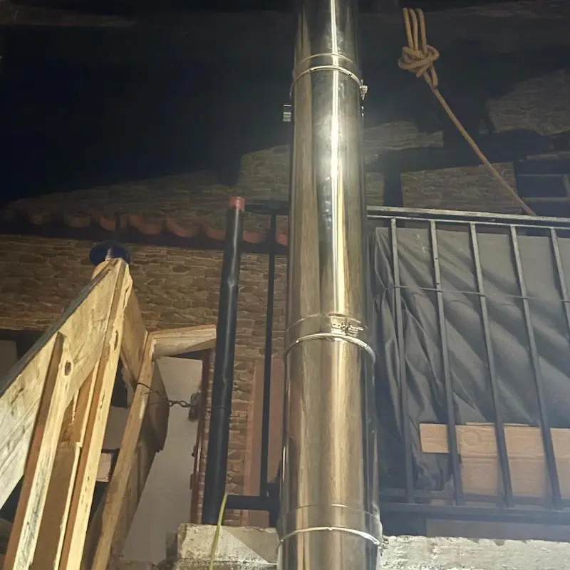 La salida de humo se ha realizado con tubería de acero inoxidable doble, de pared a cubierta.