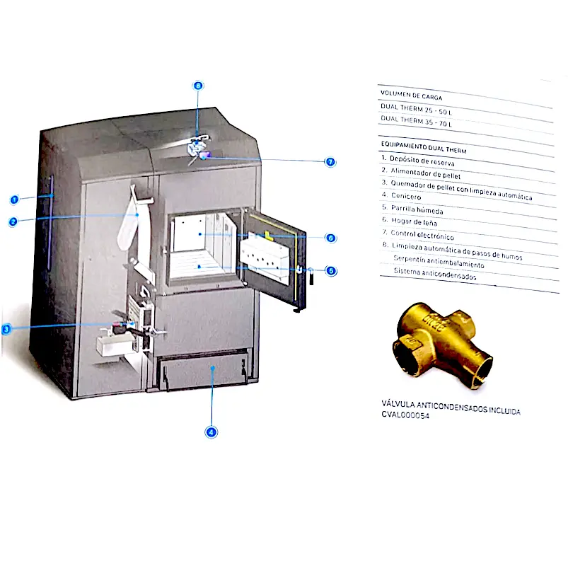 Principales ventajas de la caldera mixta de pellet y leña Domusa Dual Therm: