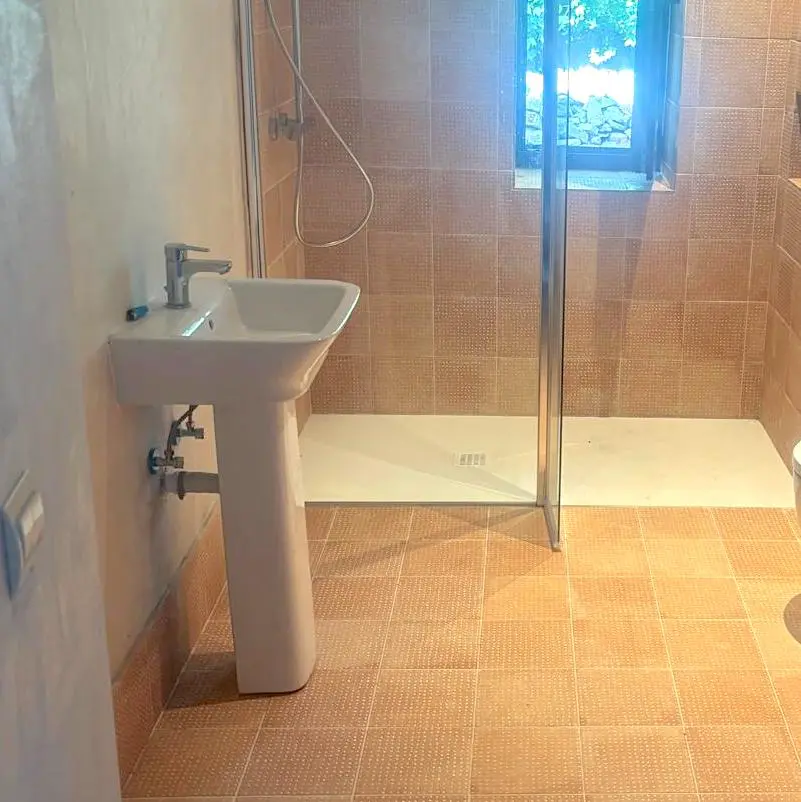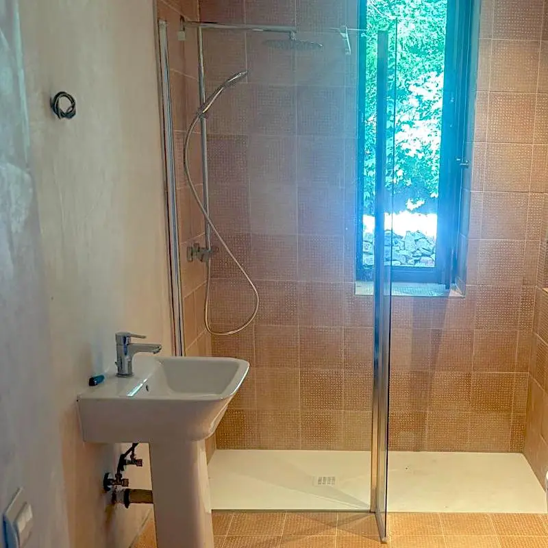 En esta reforma integral de cuarto de baño en una casa de pueblo, nuestro equipo realizó la instalación completa de fontanería y saneamiento, garantizando un sistema eficiente y duradero.